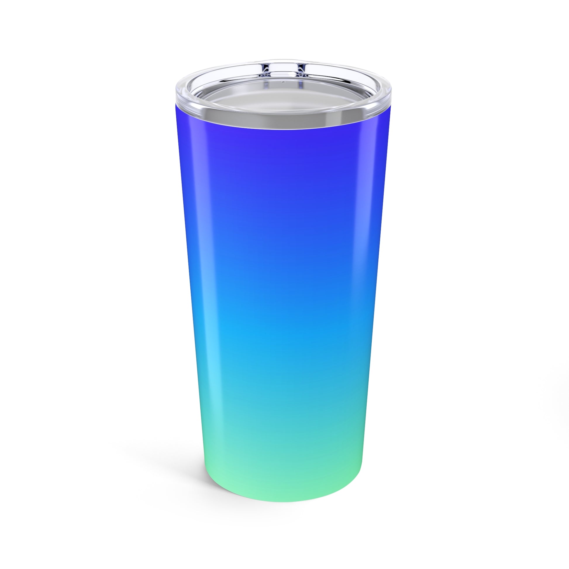 This 20oz stainless steel tumbler blends is wrapped in a dreamy ombre wash that fades from deep blue to a soft teal. It feels solid in hand — insulated to hold your coffee steamy on a chilly commute or keep iced drinks cold during long studio sessions. The clear push-on lid with a rubber gasket seals your drink while letting the gradient show through. It’s the sort of everyday companion that brightens a desk, bike basket, or workbench and stays reliable through daily use and the dishwasher.